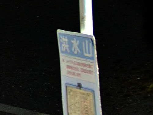 洪水(こうずい)は山では起きにくいですので不思議な名前だと思います。バス停の周囲は平地で、数百メートル北には標高52mの小山があります。「洪水」をこうずと読んでいます。由来は分かりませんでした…。 GoogleStreetView |