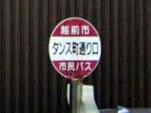 全国で「タンス」が付くバス停はここだけのようです。「和洋家具の製造販売業者や建具商が十数軒集まっている約200mの通りを「タンス町通り」と呼んでいる。江戸後期から木工技術を持った職人が住み、明治中期頃には本格的なタンス造りの職人が中心となってタンス町が形成された」(越前叡智)。 GoogleStreetView |